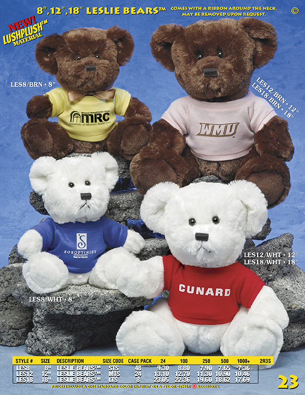 Leslie Bears make a great "Care Bear" Used by Hospitals and Law enforcement agencies Nationwide. These Super Soft loveable Stuffed Bears offer a comforting feeling when embraced by Kids of all ages 9 to 99.